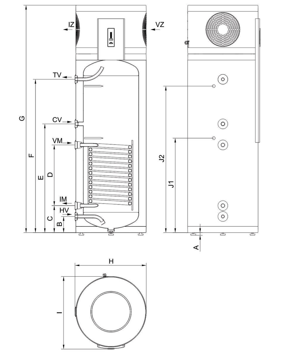 Integrated coil heat exchanger for connecting an external heat sources such as heating boilers, furnaces or solar collectors.